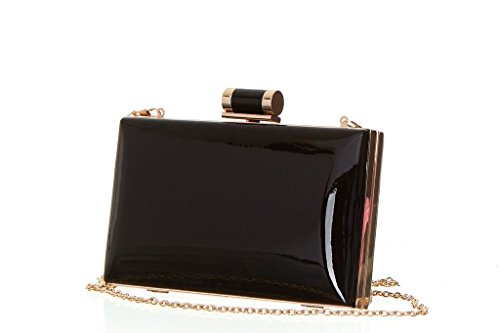 Product Description This lacquered pillbox clutch is the perfect purse to dress up or down. The posh metal-frame style adds a sleek patent finish to slinky cocktail dresses but also gives off a rock 'n' roll vibe with ripped denim for a night on the town. 0