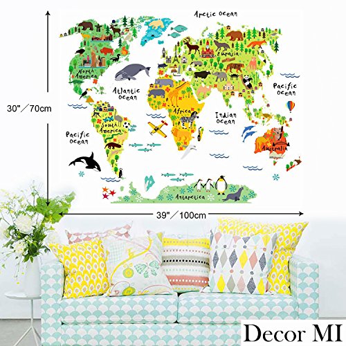 Decor MI Kids Educational Puzzles Animal World Map Wall Decals Sticker Home Decor Art Decoration
