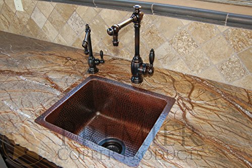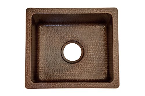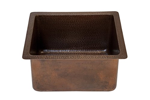 Premier Copper Products BREC16DB 16-Inch Universal Gourmet Rectangular Hammered Copper Kitchen Bar Single Basin Sink, Oil Rubbed Bronze