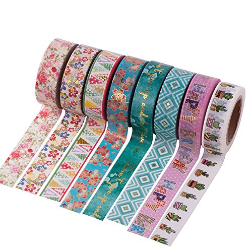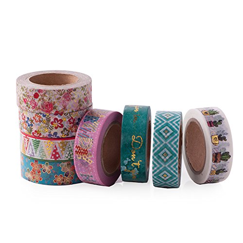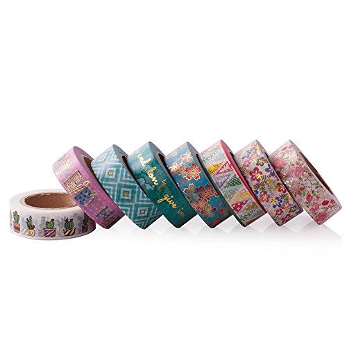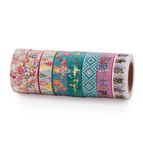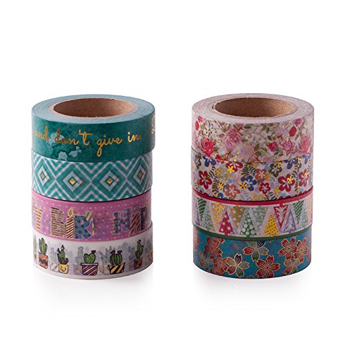 Agu 8pcs Colorful Florals Flowers Foil Gold Washi Masking Tapes Sets for DIY Crafts and Gift Wrapping
