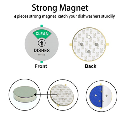 NONE SCRATCHES TO YOUR DISHWASHER--This clean-dirty sign for dishwasher manages to stay on the dishwasher by its magnetic points or adhesive tape at the back, no damages to your dishwasher.