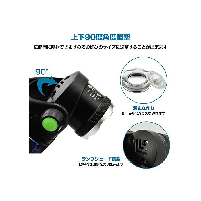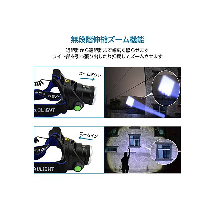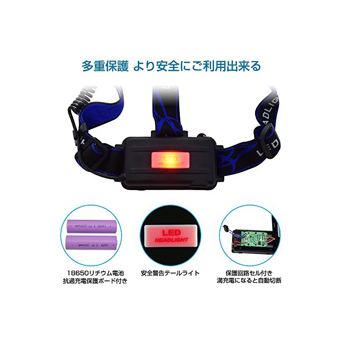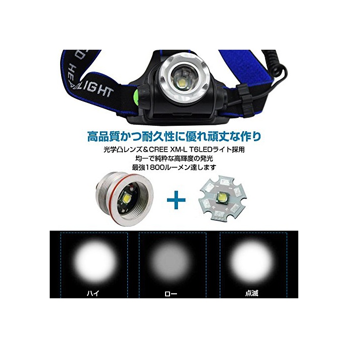 원본상품명: ヘッドライト 充電式 LED ヘッドランプ 高輝度 1800ルメン CREE XM-L T6 ズム機能付 スポットライト 3点モド 防水 角度調節可能 防災 登山 夜釣り 工事作業 18650