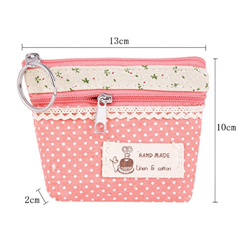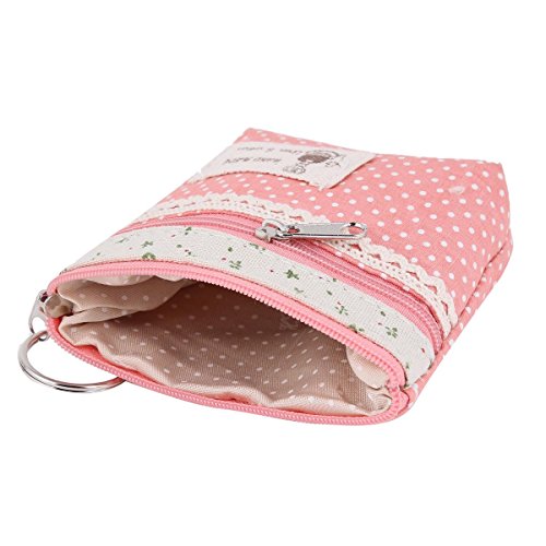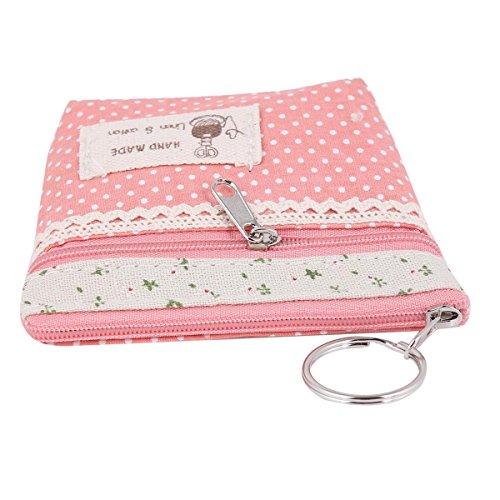 Product Description A dainty coin purse fits all the situation! Made of canvas. This purse is printed with sweet polka dot. Top zipper with grab hoop fastened. Adorned with elegant lace along the front. 1 outer layer for you to carry tiny things as key. Inside is 1 pouch to save your coin or cash. Purse measurement app: 10.8 x 9.5 x 2cm (4.2 x 3.7 x 0.8 inches). 0