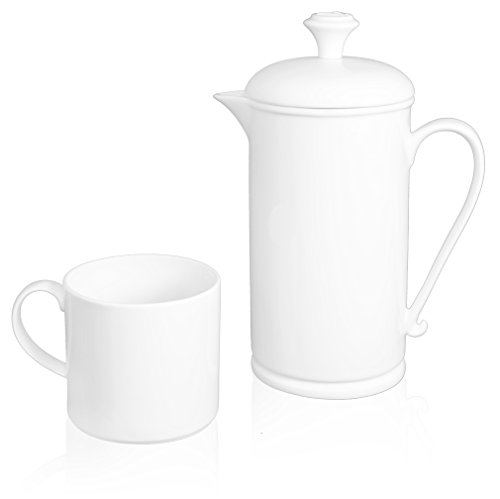 -. Title : The French Press Coffee Company Porcelain & Stainless Steel Scroll-handle French Press with 2 Matching Mugs
