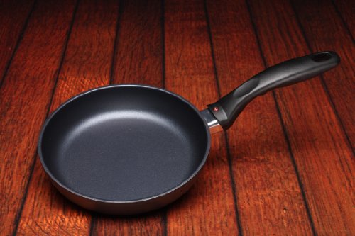Swiss Diamond's 20 cm (8”) fry pan heats evenly, will never warp, and requires only a soapy sponge to wash. The secret is Swiss Diamond's custom nonstick coating formula reinforced with real diamond particles. The skillet's perfectly flat base will not tip or spin, and prevents hot spots. Also available with a tempered glass lid sold separately. Used by discerning home chefs around the world, Swiss Diamond’s PFOA-free cookware features unsurpassed nonstick performance for healthy cooking and easy clean-up. The patented nonstick coating, reinforced with real diamond particles, allows oil-free cooking and cleans up with just warm soapy water. No more scrubbing and soaking! Swiss Diamond’s patented nonstick coating is reinforced with real diamonds for excellent durability and resilience. Why diamonds? Three reasons: they are durable, they are naturally nonstick, and they conduct heat better than any metal. A perfect combination for a lifetime of cooking excellence. Swiss quality is visible in every aspect of Swiss Diamond cookware. Heavy-duty cast aluminum will never warp, while the perfectly flat base distributes heat evenly and will not tip or spin. The rivet-free interior prevents unsightly food build-up that can lead to bacterial growth. The ergonomic handle, designed for comfort and balance, stays cool on the stovetop. All Swiss Diamond products are oven-safe up to 500 degrees F (260 degrees C). Induction model items, like this one, are suitable for all gas, electric and induction cooktops. Made in Switzerland with an eco-friendly production process.Feature