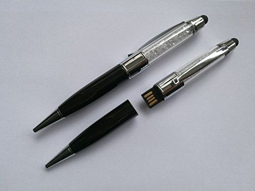 Stylish Crystal Ballpoint Pen USB Flash Memory. Beautiful Tin Box. Three in one: USB Flash Drives, Ballpoint Pen and Touch Screen Stylus Pen. Business Gifts Idea. (32GB, Black)