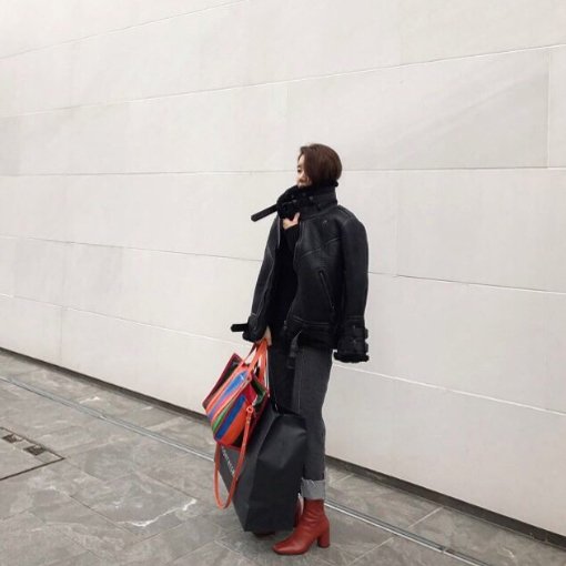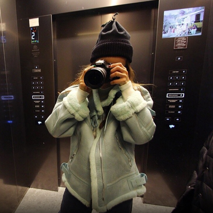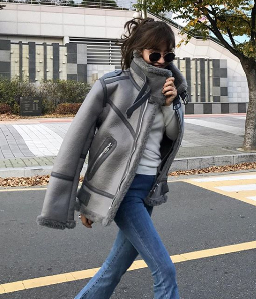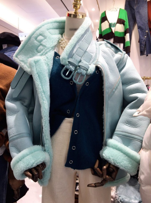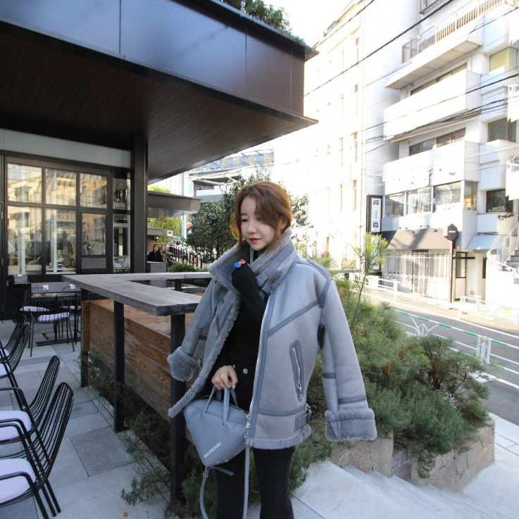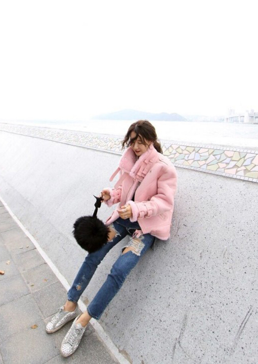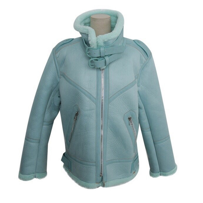 Women`s Belted Accents Shearling Jacket Gray Beige Mint Pink Black