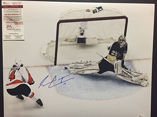 Autographed/Signed Sean Couturier vs. Marc-Andre Fleury 16x20 Philadelphia Flyers Hockey Photo JSA COA