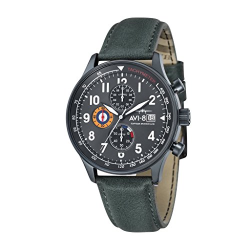 -. Feature : Aviation-inspired watch in stainless steel with tachymeter bezel and multicolored chronograph subdials / 42 mm stainless steel case with mineral dial window / Japanese quartz movement with analog display / Genuine leather band and buckle closure / Water resistant to 50 m (165 ft): In general, suitable for short periods of recreational swimming, but not diving or snorkeling