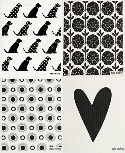 -. Feature : Contemporary Swedish Dish Cloths - Includes 2 Coordinating Designs / All natural materials: 70% Cellulose wood pulp & 30% Cotton / Designs by Malin Westberg and Marie Jangneus / Reusable and 100% biodegradable; Approx 6.75 x 8 inches each / Absorbs an amazing 15 times its own weight in water