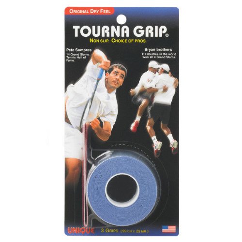 ReleaseDate : 2009-03-16 Studio : Tourna Publisher : Tourna Binding : Sports Product Description Tourna-Grip Original: This is the original overgrip used by professionals including Pete Sampras, James Blake, the Bryan Brothers, Sam Querrey, David Ferrer, John Isner, and many more. It’s used by more pro and college players than all other grips combined. Why? Because Tourna-Grip actually performs better with moisture when all other overgrips on the market get slippery with moisture. 0