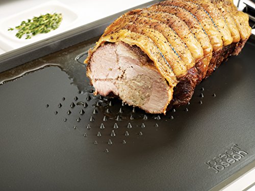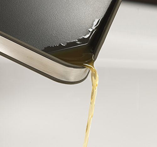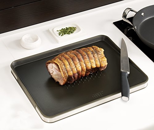 - Feature : This versatile cutting board is a must-have in the kitchen for slicing everything from bread to meat / Angled cutting surfaces and easy-pour corners assist in the collection and drainage of liquids and food / The integral meat grip secures meat in place when slicing while liquids drain from underneath it / Made from stainless steel, this chopping board has non-slip feet to hold it in place / Dishwasher safe; 15-1/4-Inch by 1 by 15-1/4-Inch