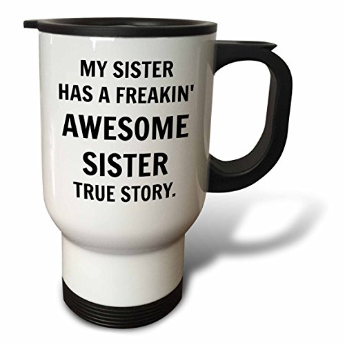 3dRose tm_224375_1 "My sister has a freakin Awesome sister black Lettering Stainless Steel" Travel Mug, 14 oz, Natural