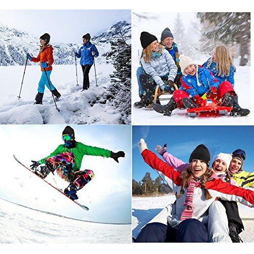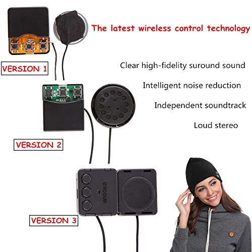 -. Feature : [Universal wireless control technology] Bluetooth V4.1+EDR, simple and fast connecting to your smart devices. Wireless range: 33 feet. The music hat with stereo speaker and microphone on the left earpiece allows you to control the music, and answer or hang up calls without having to use your phone. / [Soft, comfortable and warm] 30% Cotton+70% Acrylic, stylish knitted bluetooth beanie, keep warm. Perfect for winter indoorand outdoor sports such as running, skiing, skating, hiking, camping, dog walking, holiday travelling and so on. / [Wonderful music and calling experience] Independent soundtrack, loud stereo and clear high-fidelity suround sound. The Bluetooth beanie can create a wonderful experience for you in the process of listening to music and calling. / [Fast charging and lasting enjoyment] Bluetooth beanie with Micro USB charging port (USB cable included), built-in rechargeable Li-ion battery, offering 5-8 hours working time,120 hours standby time, 2.5 hours charging time. / [Universal size and fully washable] Stretchable music hat, so one size can fit most people. Simply remove the headphone from the beanie and put it back after washing. 90-Day Warranty or 100% Refund!