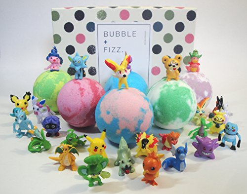 -. Feature : BATHTIME SHOULD BE FUN! Our kids surP.R.Ise bath bombs are the best way to make bath time fun and exciting! Lush, handmade, organic, and vegan, our kids bath bombs are packed with essential oils for a fun and fragrant surP.R.Ise! / EXCITING SURP.R.ISE TOY INSIDE! - Drop it in the tub and watch it fizz, color the water and reveal the mystery inside! Each set contains 6 (six) XL bath bombs of 4.2 oz each with a gender-neutral surP.R.Ise toy that gets revealed when they fizz out! (Pokemon at the moment) / ORGANIC + HANDMADE + VEGAN - all of our ultra lush bath bombs are packed with essential oils and are custom crafted for bathtime fun! / NATURAL AND ORGANIC INGREDIENTS - Our bath balms leave your skin hydrated and moisturized. Our unique blend of organic essential oils and Epsom salt ensures that they are KID Safe. / 100% NATURAL BATH BOMBS THAT WON'T STAIN YOUR TUB - benefit from a product that's entirely natural.