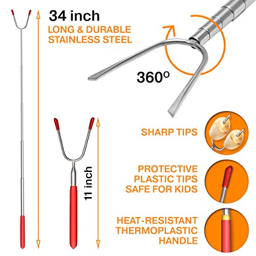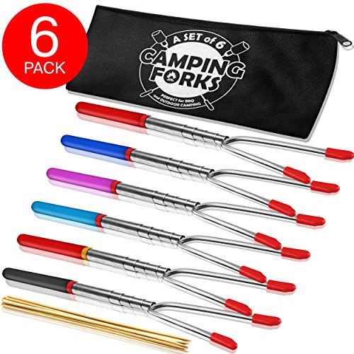 - ✓ SAFER S’MORES AND STICKY SMILES: Keep your kids safer from fire heat and sparks with these Safe Length 34-inch Roasting Forks! They’ll also love choosing their favorite color from this set of 6 brightly colored Marshmallow Extending Roasting Sticks.