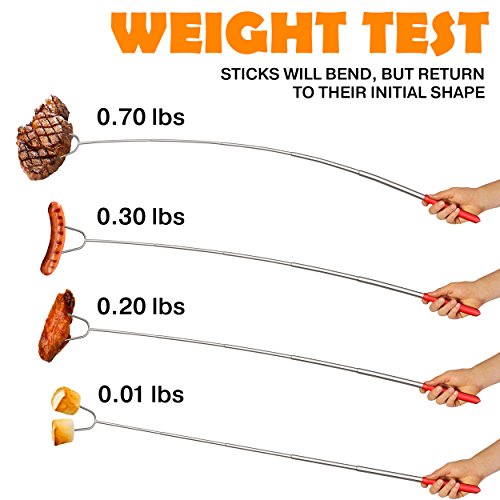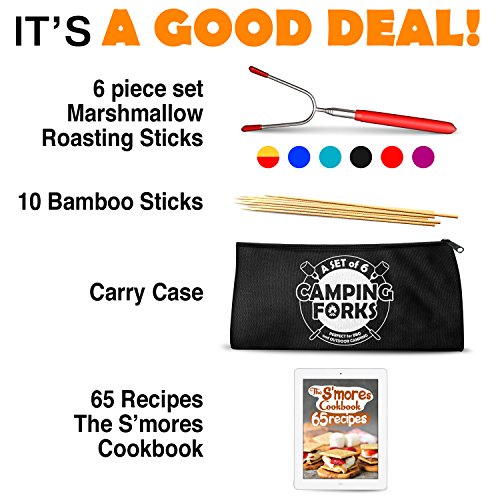 - ✓ SAFE & FUN OR YOUR MONEY BACK & 365 DAY REPLACEMENT WARRANTY: Thank you for purchasing this 6pc Extendable Roasting Skewers with free Recipe E-Book. If, for some unique reason, you and your kids are not having the best campfire fun, let us know in 365 Days. We’ll replace your set!