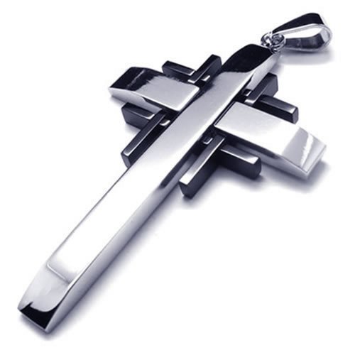 -. Title : KONOV Black Silver Stainless Steel Cross Mens Womens Necklace Pendant 24 inches Chain