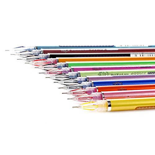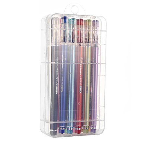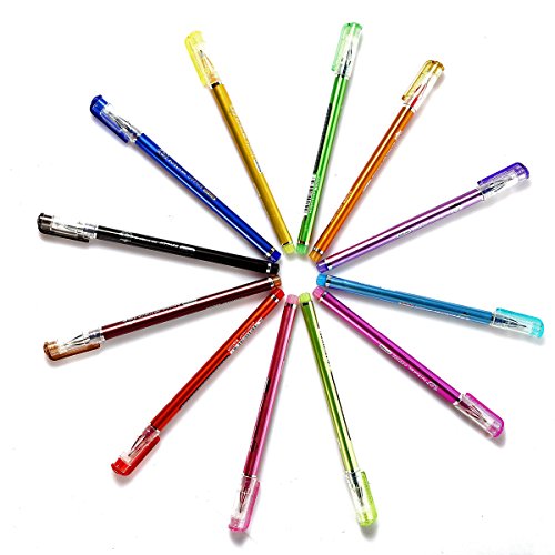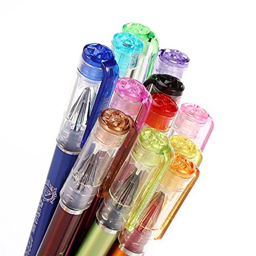 -. Feature : 1. 12 Exclusive Assorted Colors: A variety of colors includes blue, black, red, green, purple, brown, grass green, yellow, pink, aubergine, cyan and orange. The colors are bold and vibrant, but never bleed through paper. / 2. Practicability in Use: Ideal for Scrapbook, Drawing, Coloring, Greeting Cards, Crafting, Doodling, Decorating, highlighting& underlining text books and More! All in all, the 12 gel color set can be used in wide variety of craft creation. / 3. Ultra Quality: these pens are comfortable to hold and inks flow smoothly and vividly out of pens with no skipping. The fine tips are not only suitable for general drawing&writing, but also allow you to color intricate pattern with ease. / 4. Easy and Convenient to Carry-on: Transparent plastic case help your color pens are always in organized order, which never mess with other stuff in your bag. And each gel pen can be stored in its own individual insert and comes with a cap for long-lasting use. / 5. Perfect Presents Both for Children and Adults: the pen has a cute little gem on the tip of each cap,which is an approP.R.Iate present for adults who enjoy artistic and beautiful stuffs.