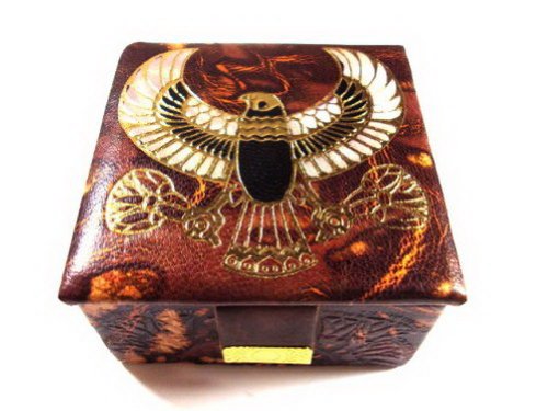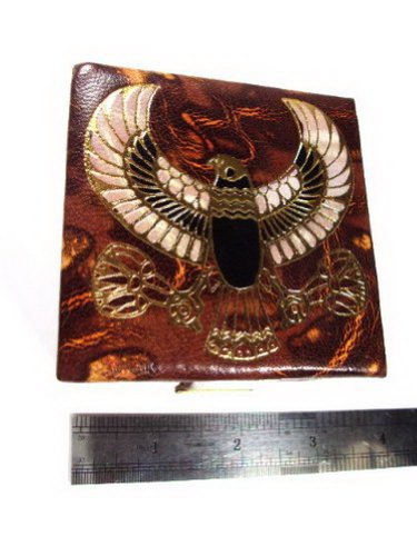 -. Feature : Egyptian HAND MADE FALCON HORUS Genuine Leather Jewelry Box Pharaoh ethnic l / Size:Dimensions: 3 X 3 X 1.7 Inches =7.5X7.5X4.5 CM / Material: Egyptian genuine leather - Color: see pictures / Weight :70 GM - Quantity : 1pcs / Condition: NEW EGYPTIAN HANDMADE WITH HIGH QUALITY