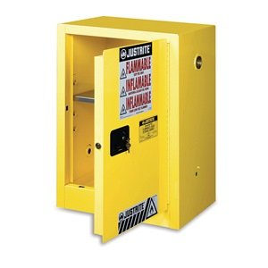 -. Title : JUSTRITE Sure-Grip EX Space-Saving Compact Safety Cabinet - 23x18x44" - 12-Gallon Capacity - Manual-Closing Doors