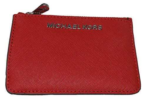-. Brand : -. Department : womens -. Feature : Slim saffiano leather coin pouch and ID holder with polished silver tone hardware / Zip top compartment with card slip and a split key ring inside / Accented with logo / Back offers a clear ID slot, (2) card slips and a larger slip / Measures approximately 5" (L) x 3.5" (H) and has an MSRP of $118.00 -. Model : 35S7STTW5L -. ProductGroup : Shoes -. ProductTypeName : SHOE_ACCESSORY -. Title : Jet Set Small Top Zip Coin Pouch with ID Holder - Saffiano Leather
