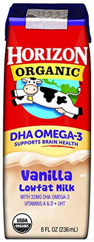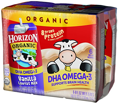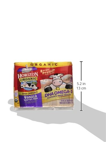 Horizon Organic Low Fat Organic Milk Box Plus DHA Omega-3, Vanilla, 6 Count (Pack of 3)