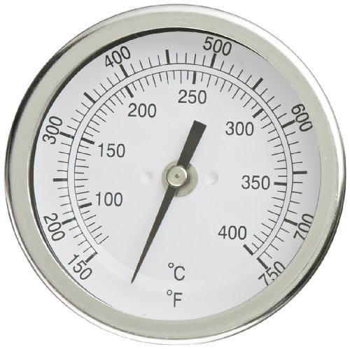 PIC Gauge B3B6-SS Stainless Steel Bimetal Thermometer with Back Connection, 3" Dial Size, 6" Stem Length, 150/750° F and 150/750° C Temperature Range