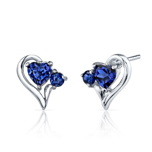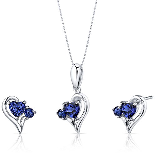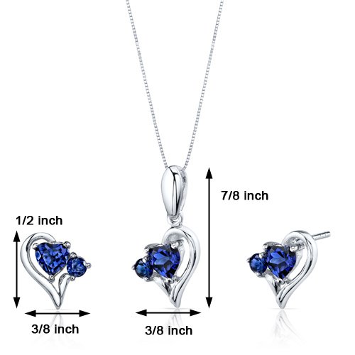 -. Title : Created Sapphire Pendant Earrings Necklace Sterling Silver Rhodium Nickel Finish Heart Shape 2.25 Carats