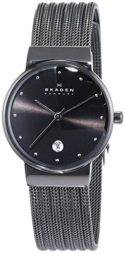 -. Binding : Watch -. Brand : Skagen -. Color : Black -. Department : womens -. EAN : 4048803842676 -. Feature : Round watch with sunray dial featuring minimalist sticks and markers and date window at six o'clock / 26 mm stainless steel case with mineral dial window / Quartz movement with analog display / Stainless steel band and fold-over push-button clasp with safety / Water resistant to 30 m (99 ft): In general, withstands splashes or brief immersion in water, but not suitable for swimming / Water resistant to 30 m (99 ft): In general, withstands splashes or brief immersion in water, but not suitable for swimming -. Label : Skagen -. Manufacturer : Skagen -. Model : 355SMM1 -. MPN : 355SMM1 -. NumberOfItems : 1 -. PackageQuantity : 1 -. PartNumber : 355SMM1 -. ProductGroup : Watch -. ProductTypeName : WATCH -. Publisher : Skagen -. ReleaseDate : 2014-01-16 -. Size : Standard -. Studio : Skagen -. Title : Skagen Women's 355SMM1 White Label Analog Display Quartz Black Watch -. UPC : 768680124491