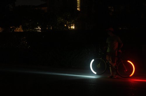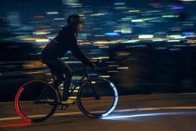 Revolights City 700c Multi-Speed Bicycle Wheels Revolights provide a functional brake light, legal headlight, and true 360º visibility in one fully-integrated, revolutionary design. Revolights City Wheels takes our award-winning design a step further, integrating Revolights permanently into our very own custom-designed wheels. City Wheels create the same 360-degree visibility and forward projection as always, but require minimal installation. Just put the wheels on your bike, mount your magnets, and ride!  Revolights City Wheels View larger  Revolights City Wheels in action View larger Bicycle-related highway incidents are on the rise, with most nighttime bike-car collisions due to inadequate side visibility. Revolights provide a much safer alternative to the traditional, first-generation bike light. Revolights' unique and stylish design is sure to turn the heads of motorists, pedestrians, and fellow cyclists alike. See and be seen! Revolights light your path using rings of LEDs mounted directly to your wheels. Lithium-ion batteries, bracket-mounted to the front and rear hub, supply power to the LEDs. The batteries are lightweight and rechargeable via USB. A fork-mounted magnet and an integrated accelerometer provide speed and orientation data to the rings, allowing the LEDs to illuminate only when oriented at the front or rear of the bicycle. The patented Revolights Bike Lighting System consists of four narrow LED rings?two white and two red?mounted directly to custom-designed bicycle wheels. The LEDs synchronize to the bike's speed to provide a legal headlight, functioning brake light, and true 360-degree visibility. A bright white light shines beyond the tire to illuminate the ground in front of the rider, and makes the bike highly visible to motorists on the road. The rear (red) light senses when the rider is slowing down and blinks to alert drivers, making it the first functioning bicycle brake light. Revolights' low origin of light also creates a unique height shadow effect, making ground objects and obstacles stand out in far greater detail than with traditional bike lights. Because the LED rings are riveted directly onto the wheels' rims, Revolights City Wheels are virtually theft proof. When you lock up your wheels, you're locking up your lights. A detailed instruction booklet is provided, plus online videos and a phone hotline (which connects you to a real person), ensuring your installation will go smoothly. Revolights has been granted a number of awards including: Best Transportation Design (Core77 Design Award of 2012), Top Cycling Innovation of 2012 (Gizmag), Top Gear of 2012 (Gear Junkie), 2013 Gear of the Year (Men’s Journal), 2013 Best Design (Fubiz Design Awards), 2013 Best in Show (Distree Fresh Awards), 2013 James Dyson Award Int'l Finalist, etc.  Light up the night with Revolights City Wheels. View larger Revolights ensure maximum safety by offering both lighting and sighting in one revolutionary design. Superior lighting means fully illuminating a cyclist’s path. Unlike traditional headlights, which focus light on a single location, Revolights throw a uniquely even and wide vertical swath of light, illuminating not only the ground but road signs and elevated obstacles as well. Revolights' 360 degrees of illumination also makes it much easier for others to see the rider. This superior sighting increases safety tremendously, as most nighttime bike-car collisions are due to inadequate side visibility. - 280 lumens (8 x 35-lumen LEDs)