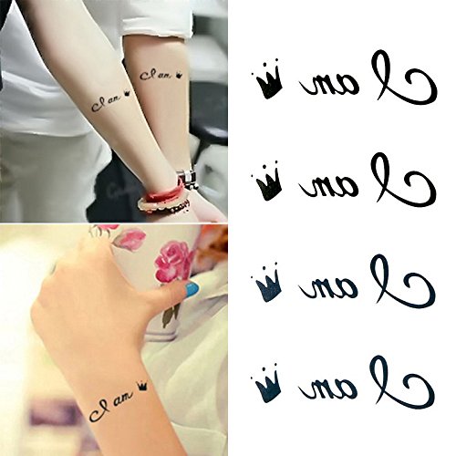 Oottati Small Cute Temporary Tattoo Wrist Crown Words Quote I Am King (Set of 2)