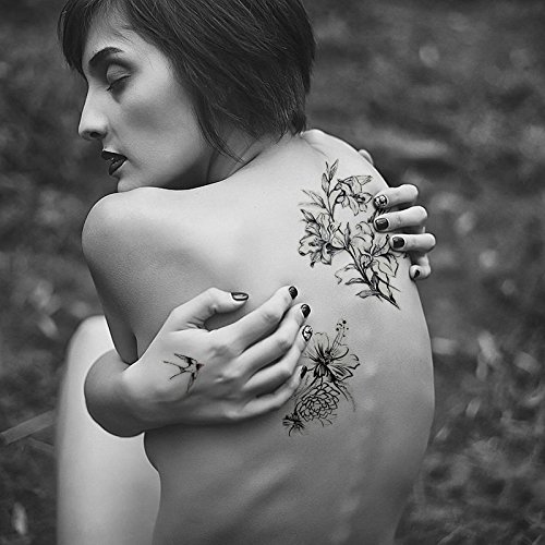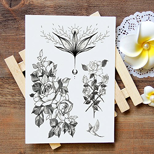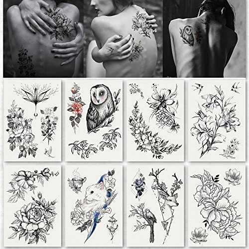 Kotbs 8 Sheets Temporary Floral Tattoos Sexy Body Tattoo Sticker for Girl Women Makeup Waterproof Large Temporary Tattoos Flower Paper Fake Tattoo