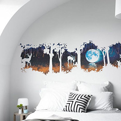 -. Title : Amaonm Removable DIY Creative Hazy Moonlight Green Moon Giant Tree Wall Decals Kids room Wall Sticker Murals Animals Deer Wall art Decor for Living room Offices Bedroom Background Decorations