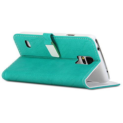 Galaxy S5 Case, GMYLE Wallet Case Glamour for Samsung Galaxy S5 - Turquoise blue PU Leather Protective Flip Folio Slim Fit Wallet Stand Case Cover (with 3 card slots)