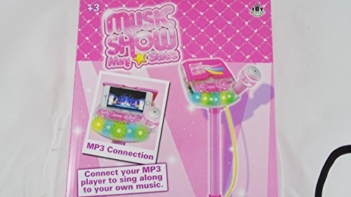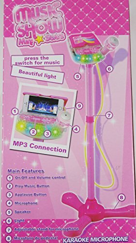 Music Show Karaoke Microphone For Kids Sing Along Microphone With Aux And Phone Connectivity Adjustable Volume On Karaoke Toy. Karaoke Microphone toy has mp3 connection, aux connecting to connect your cell phone and sing along to your favorite songs. it has a built in speaker, and adjustable stand for microphone. Karaoke Toy requires 3 AA batteries.Feature