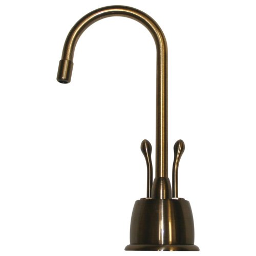 Whitehaus WHFH-HC4650-ABRAS Forever Hot 4 1/8-Inch Instant Hot/Cold Water Dispenser with Gooseneck Spout and Self Closing Hot Water Handle, Antique Brass