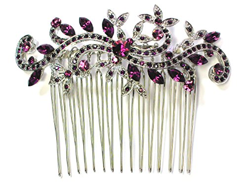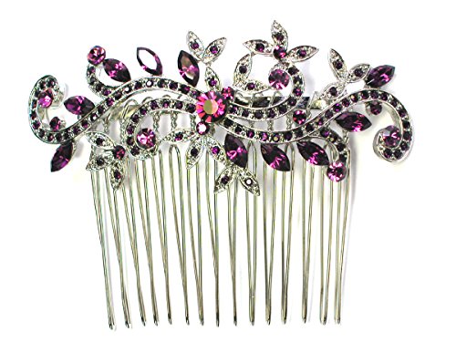 Faship Purple Crystal Floral Hair Comb