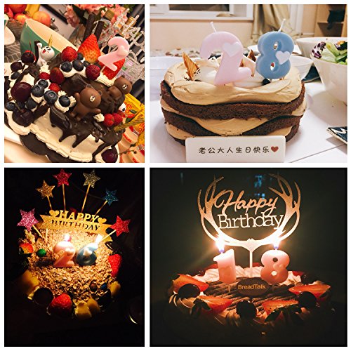 HUNGER BABY Birthday Cake Topper Number 4 Candles, Pink (Number 4, Blue)