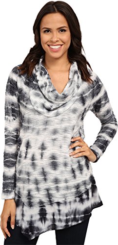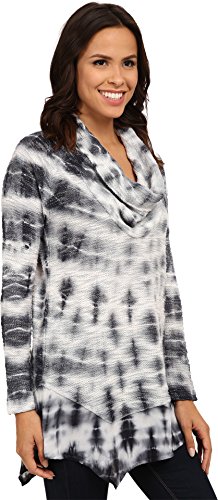 Pullover tunic top is fabricated from a textured and gauzy cotton-poly knit blend. Tie dye-inspired design. Cowl neckline. Long raglan sleeves. Asymmetrical hem in an airy woven viscose. Body: 55% cotton, 45% polyester; Contrast: 100% viscose. Machine wash cold, tumble dry low. Imported.