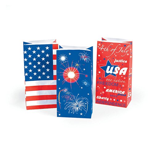 Paper Patriotic USA Flag Bags - 1 Dozen - 4th of July Independance Day