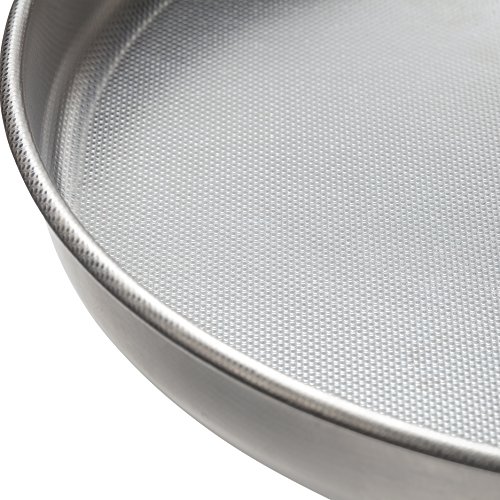 Fantes Cousin Serafina’s Pizza Pan is made in Italy from solid, heavyweight 18/10 stainless steel. Learning how to make pizza just got easier. Create homemade pizza recipes, like pepperoni pizza or veggie pizza, even gluten free pizza, without them sticking to the pan! The revolutionary, micro-texture pattern stamped directly into the pan creates a naturally non-stick surface for easy food release, with no chemicals or non-stick coatings. It outperforms conventional stick-resistant cookware and will not rust! Simply coat the interior textured surface with vegetable oil, butter or margarine before adding pizza dough then bake according to recipe. Allow to cool down before removing food from the pan. Metal, wood and plastic cooking utensils can be used without damaging the non-stick surface, however sharp-edged knives or forks are not recommended. Minor scratches will not affect the non-stick performance. Do not use over direct flame or leave empty over hot burner as this will cause damage or discoloration. To clean, allow pan to cool gradually. Do not pour cold water onto the hot pan as it may warp. Wash in warm, soapy water or place in the dishwasher. Soak in hot water to soften any burned- or dried-on foods. Wipe with a sponge dipped in lemon juice or white vinegar to remove water spots or mineral buildup. Use a stainless steel cleaner periodically to preserve the pan’s shiny finish. Cousin Serafina’s 18/10 stainless steel pan is a great non stick cookware alternative. Measures 13 x 1.25-inches deep. Dishwasher safe. Fante’s family recipe and instructions included.
