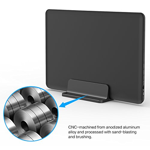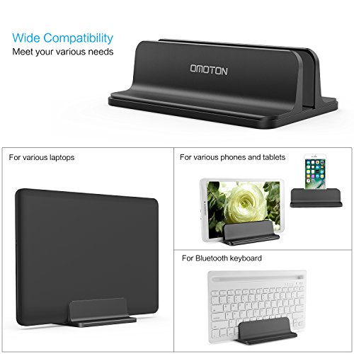 -. Title : Vertical Laptop Stand [Adjustable Size], OMOTON Desktop Aluminum MacBook Stand with Adjustable Dock Size, Fits All MacBook, Surface, Chromebook and Gaming Laptops (Up to 17.3 inch)