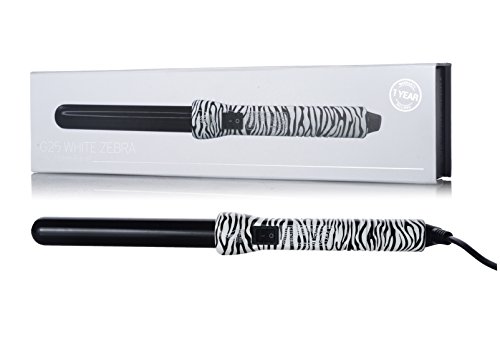 25 MM CERAMIC BARREL – This tapered curling iron comes with a 25mm clipless barrel that provides even heat distribution with no static or frizz, for achieving any size curl.