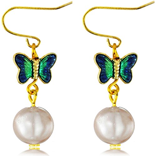 -. Title : Y-blue Mothers Day Gifts Butterfly Multi-Color Simulated Pearl Drop Earrings