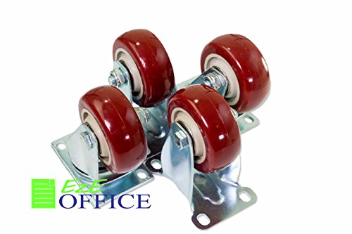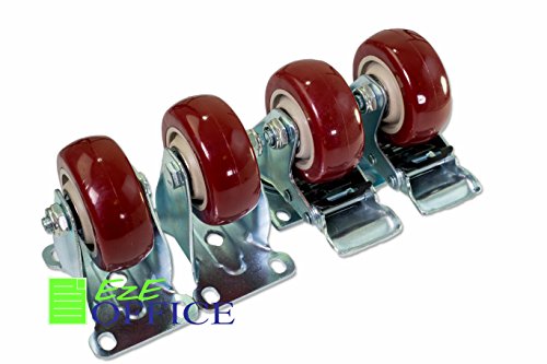 Caster Wheels Steel Plate Casters On Red Polyurethane Wheels 1200 Lbs 3 inch 2 with Brake 2 Fixed Plate