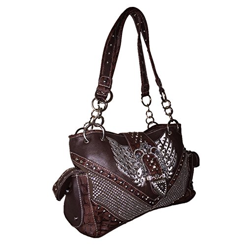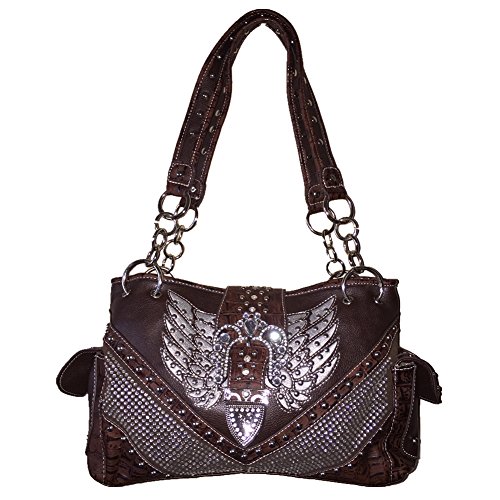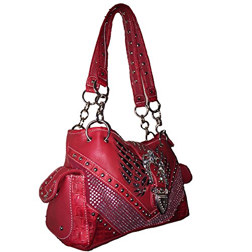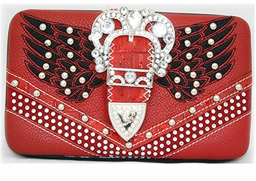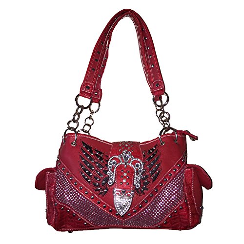 -. Feature : Rhinestone Studded Angle Wings Buckle Shoulder Handbag Purse &Wallet in 3 Colors.New with Fast Shipping. / High quality Leather, stylish angle wings design with buckle closure on top. / Handbag with compartments inside, cellphone pocket, wallet pocket. Large pocket with zippers inside, on top and outside, extra pocket on back and large handgun pocket. Wallet: 10 credit card slots, 2 I.D slots. 3 large bills pockets. extra checkbook. / Size: Handbag 14" x 9" x 5", Wallet:7" x 4" x 1". Weight: Handbag about 2.8 lbs. Wallet about 1.2lbs / Same business day handling with fast shipping.