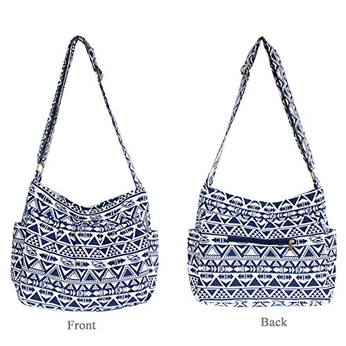 -. Feature : High-quality denim fabric Cloth Storage Bag, with fabric lining, sturdy, durable. Dimension: Overall size of it is L 14.96"*W 4.72"*H 11" (L 35cm*W 12cm*H 28cm). Adjustable shoulder Strap, alter it for just the right length for you:Strap width is 1.77"(4.5cm) and length up to 46.45"(118cm). / Large capacity design for your convenience/Multiple pockets: 1 main zipper compartment; 2 pouches inside (1 inner zipper pouch, 1 inner open pouch, for cell phone, cards any small stuff); 2 pouches on the left and right side of bag to hold water bottle or umbrella; 1 back zipper pocket(best place to holds the things that you wanted to be easily accessible.) Perfect for your daily outfits,casual enough for a country walk. / Lightweight only 11.41oz. So easy to carry when you have any outdoor activities. The shoulder strap can easily be adjusted to make it fit very comfortably either on your shoulder or across your body. / Washable,very easy to be clean, very fast to be dry, recommend hand wash. / Practical: This purse is ideal for shopping trips or family excursions. Versatile satchel Prefect for all ages, plenty of room for your cell phone, wallet, makeup and toiletries.