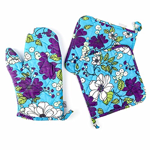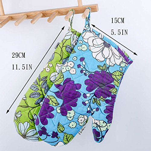 YUFENG Oven Gloves and Pot Holder Non-Slip Kitchen Heat Resistant Oven Mitts Cooking Sets for Kitchen Grilling Cooking, Baking, Barbecue Potholder 1 Set (blue)