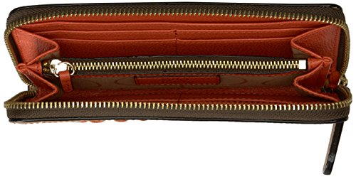 Laced stem' textured leather big zip wallet with hand laced stem detail front and back. Navy linear stem jacquard lining and contrast colored zip to close. Inside details include a zipped compartment for change and card/note slots.